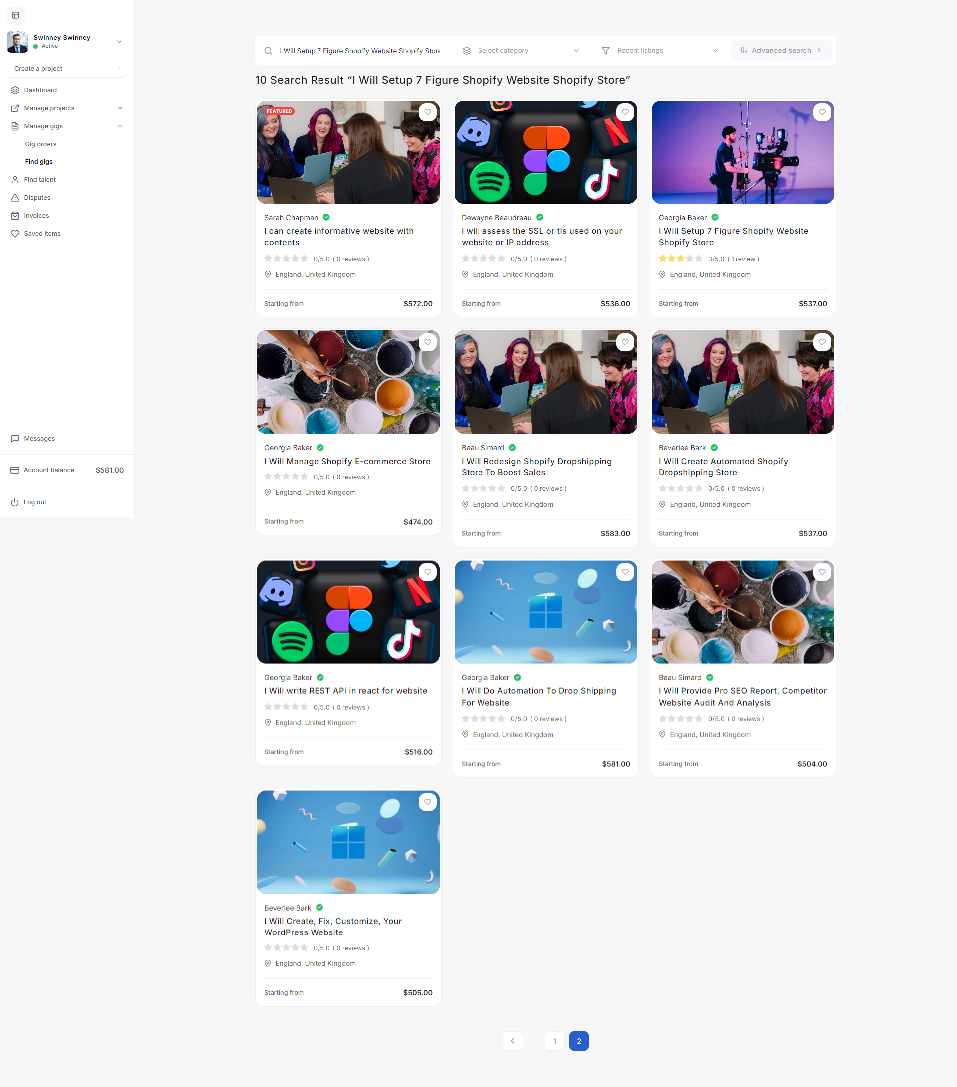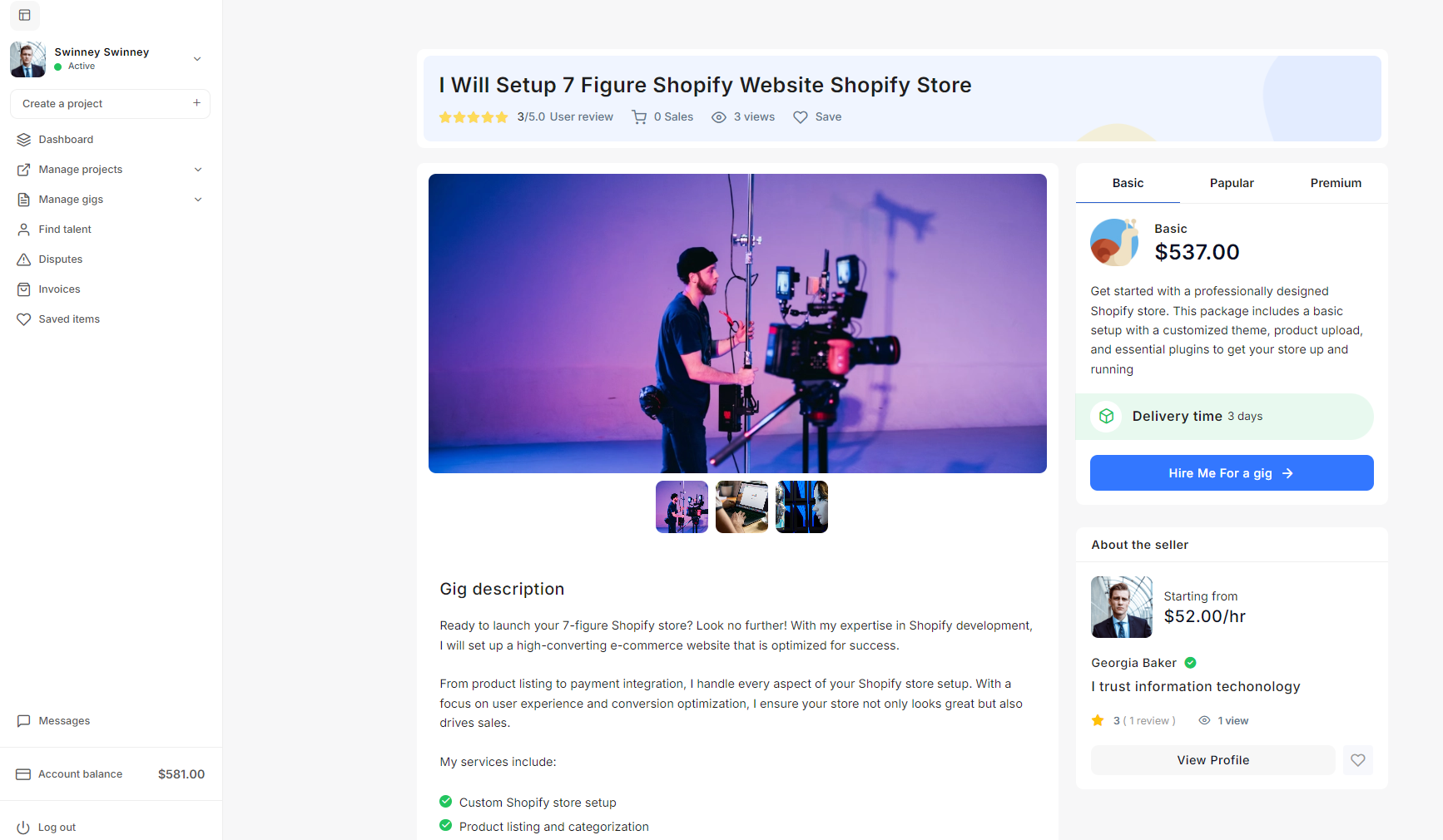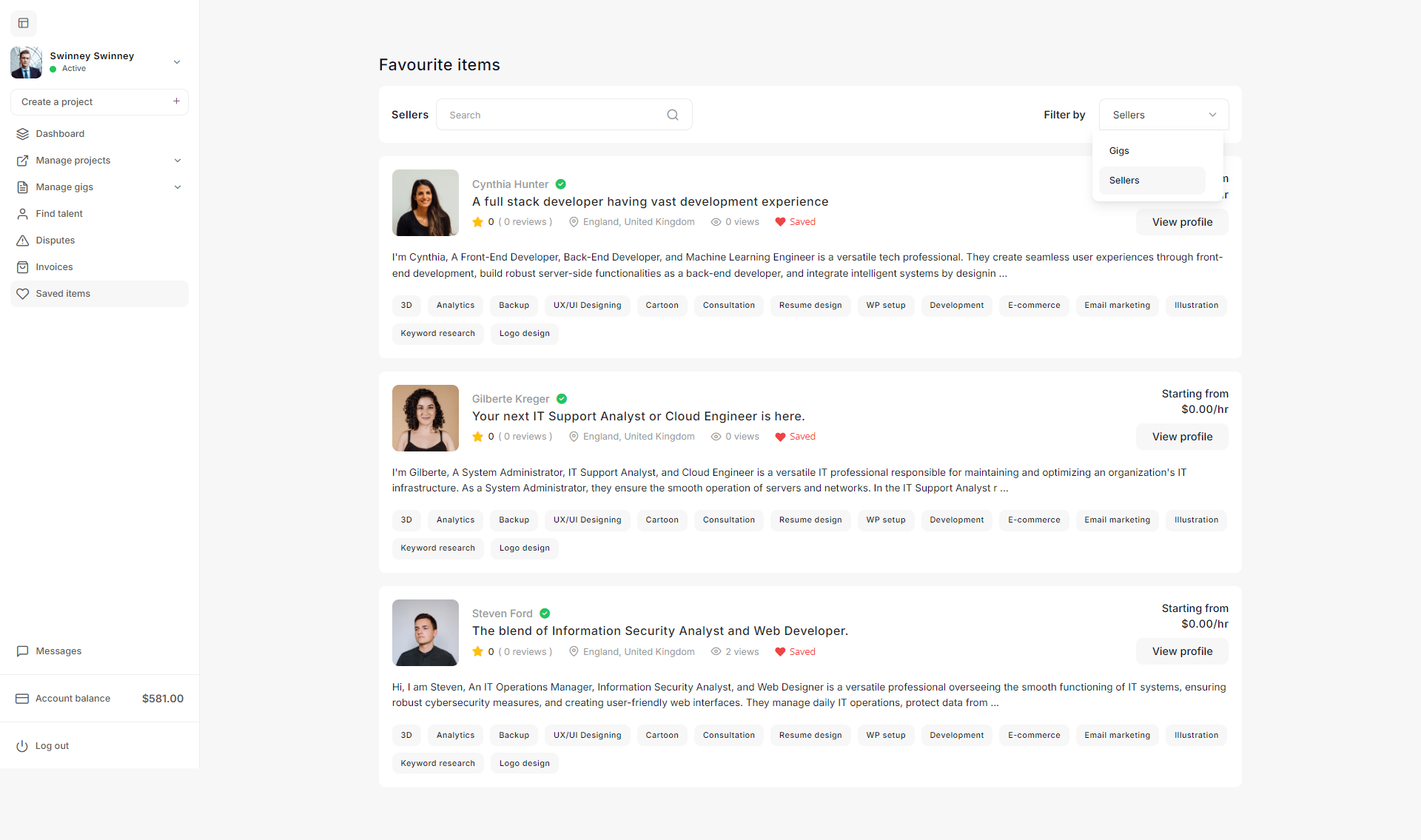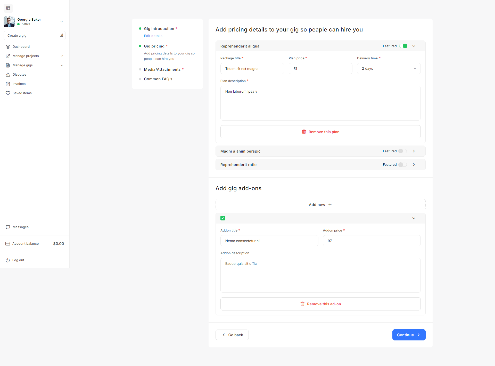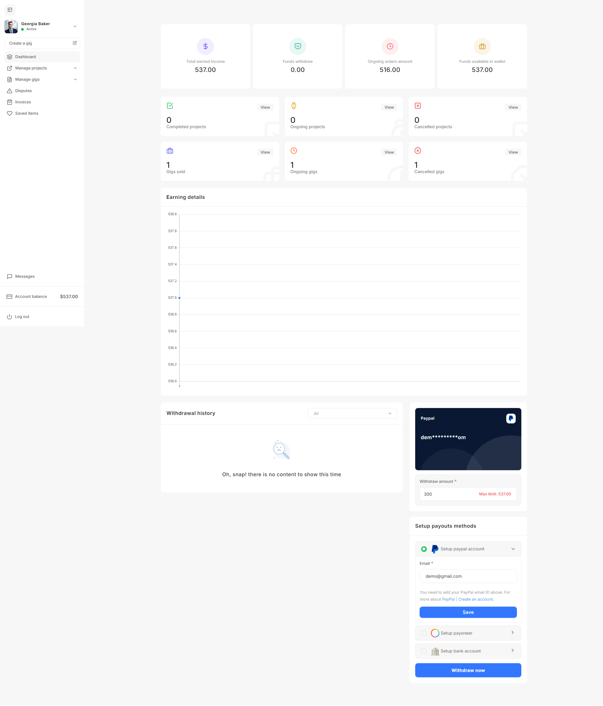 The Gig Management section enables the admin to manage all gig related activities on the platform.
