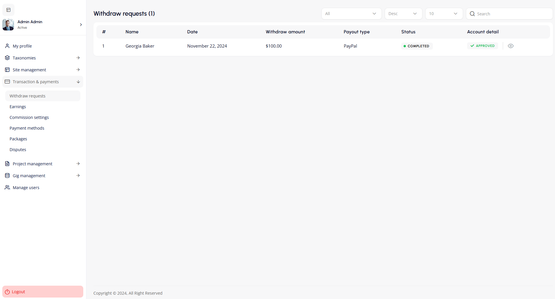 - Approve or Reject Withdrawals: Review each withdrawal request and either approve or reject it.