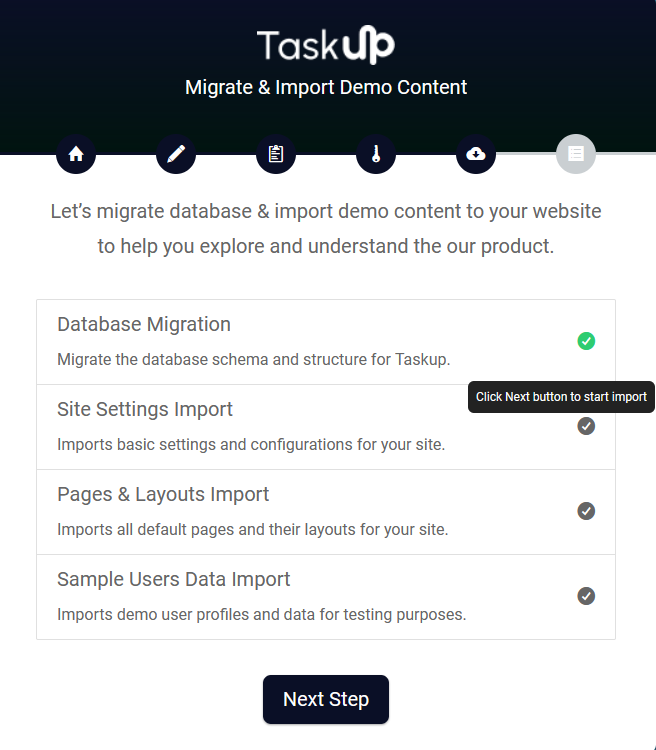 - Action Required: Click on the Next Step button to start the import process.
