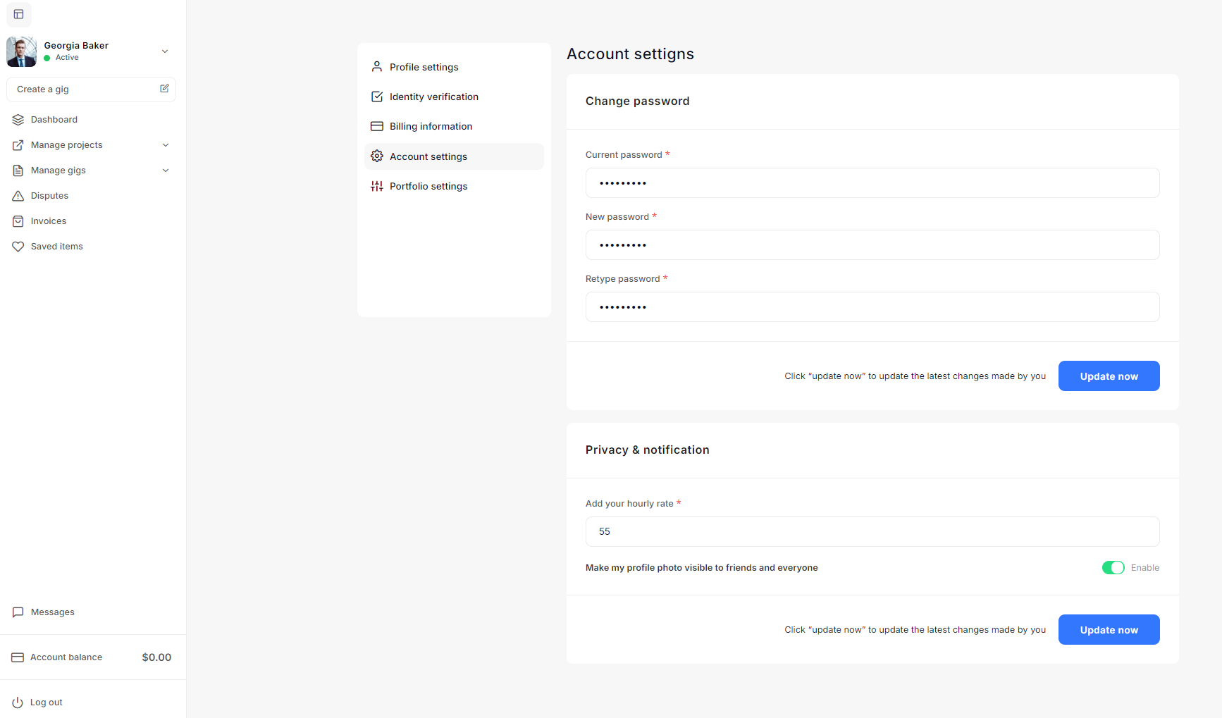 - Seller Settings: The Seller settings allow admins to configure seller-related options, including hourly price range, business types, social link visibility, withdrawal amount limits, and default profile banner images. These settings help manage seller profiles and activities effectively.