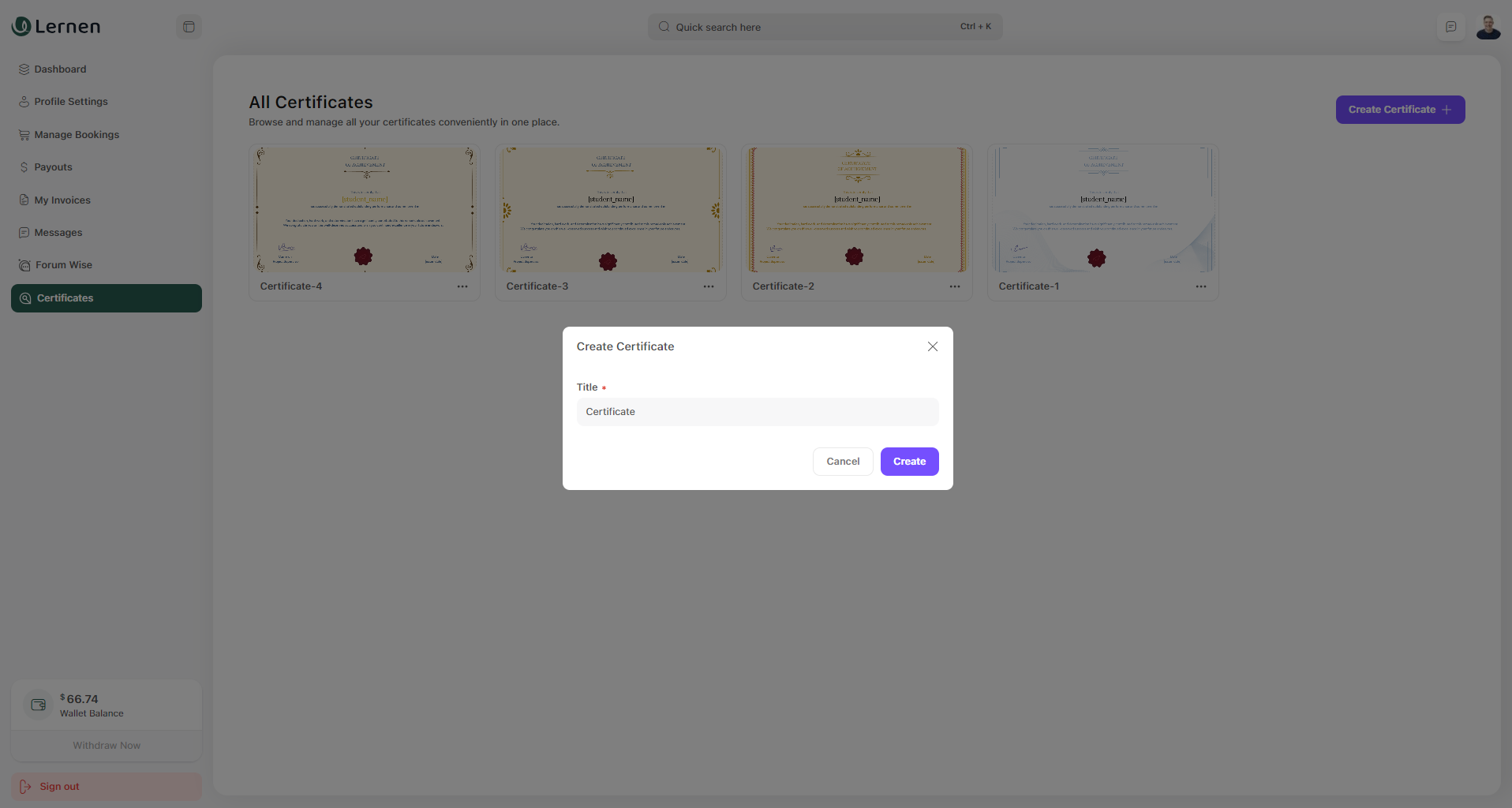 - Create Button: After entering the title, users can click Create to add the certificate to their collection.