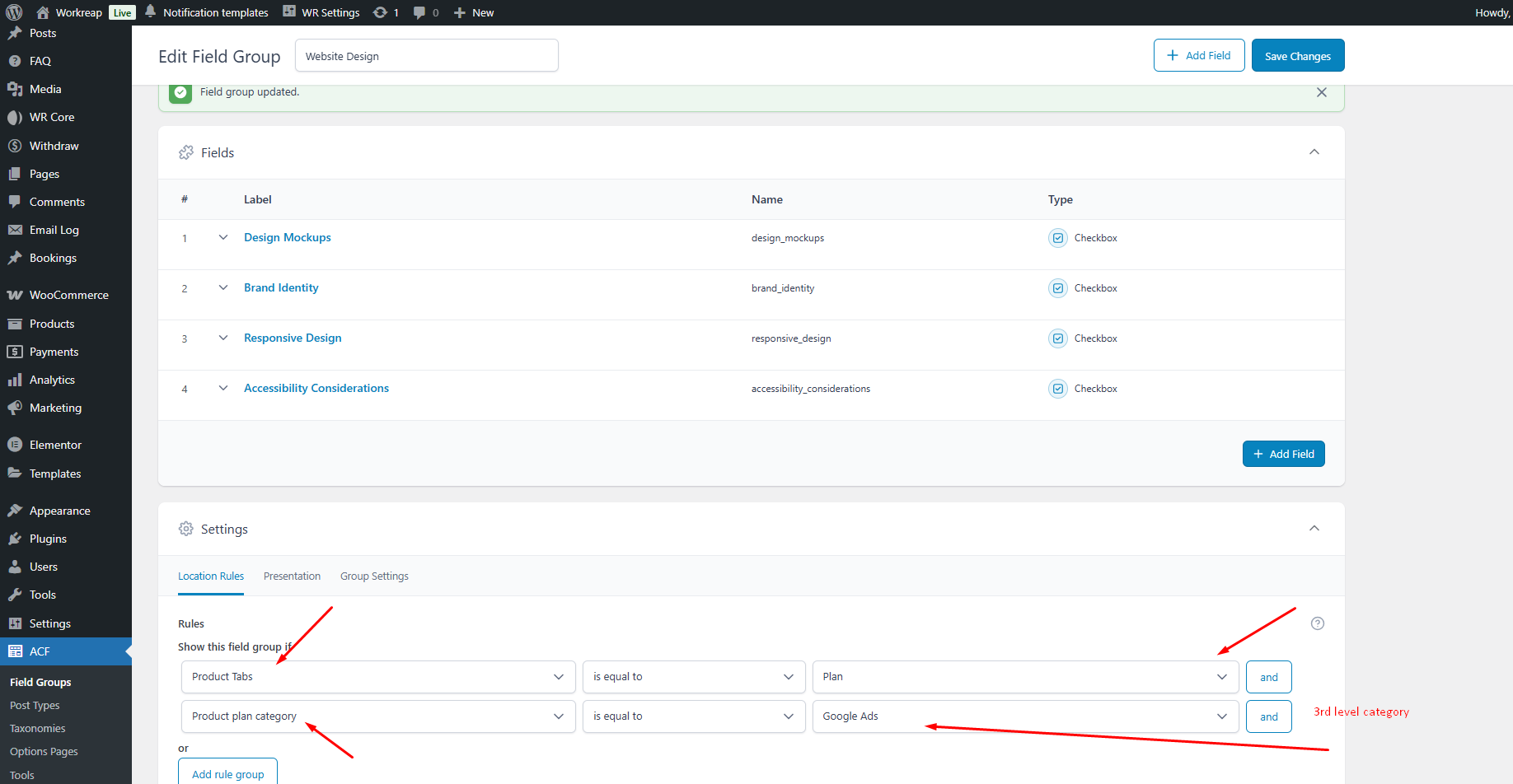 Here, the Freelancer adds the Task Type. These task types are categories, and the admin relates ACF fields to these categories. For now admin only relate 3rd level categories to ACf fields.