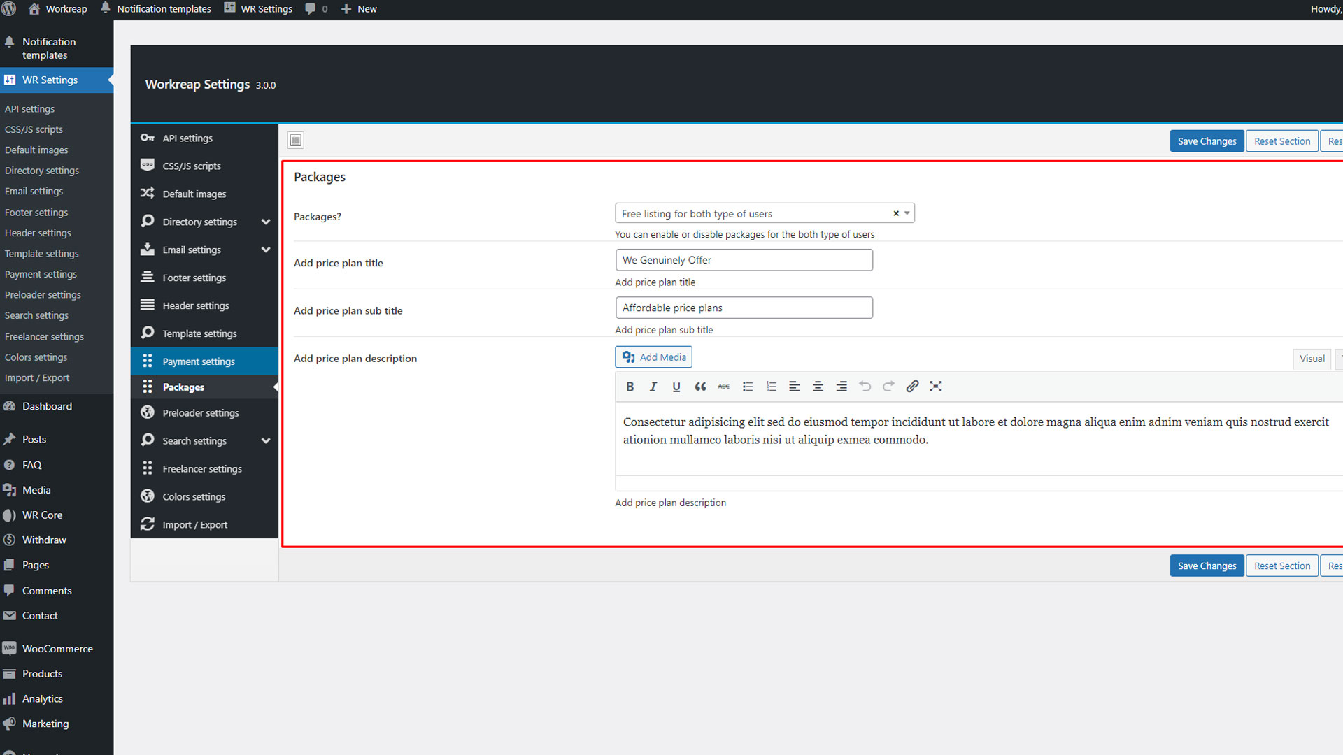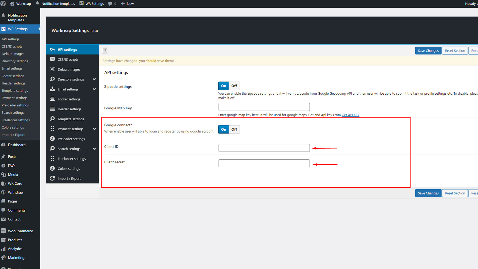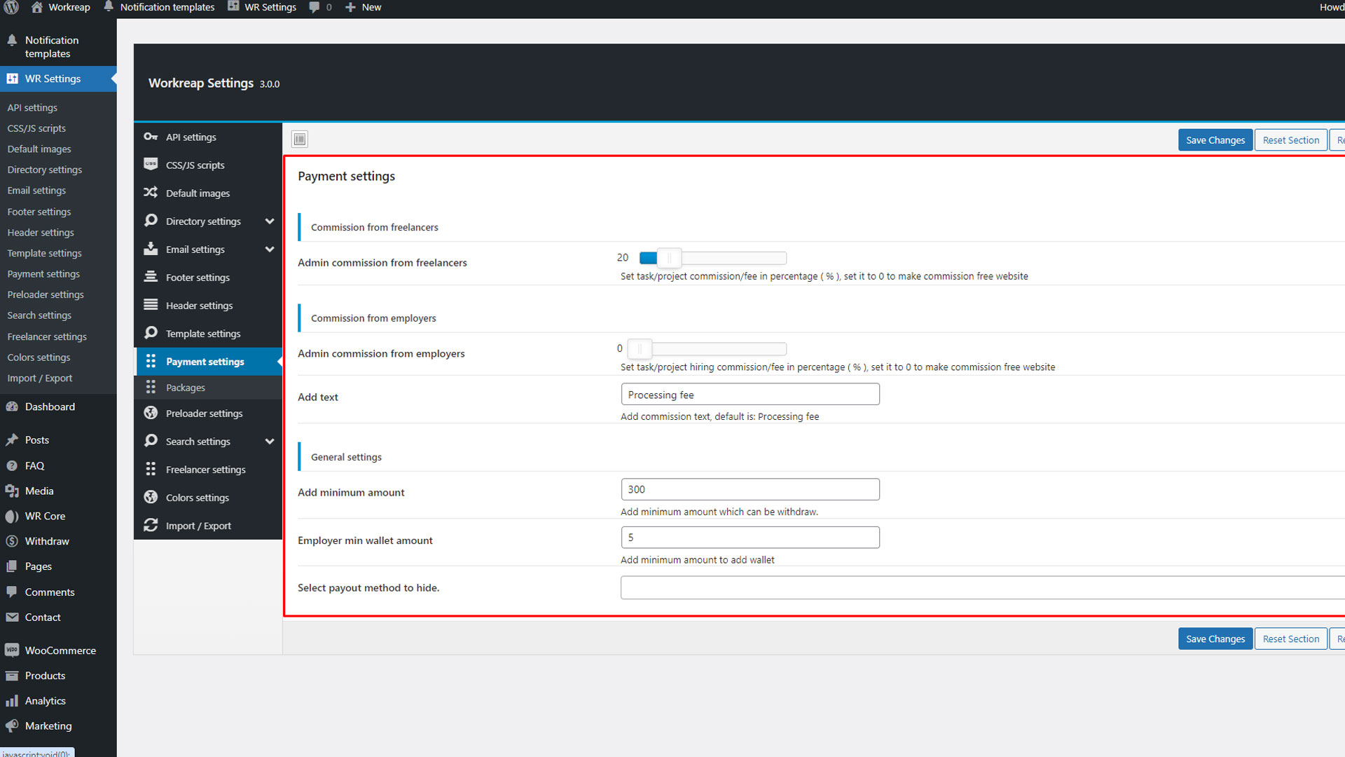 After installing and activating the Workreap required plugins, go to WP Admin > WooCommerce > Settings > Advanced > Features, and set the order data storage to "WordPress post storage".