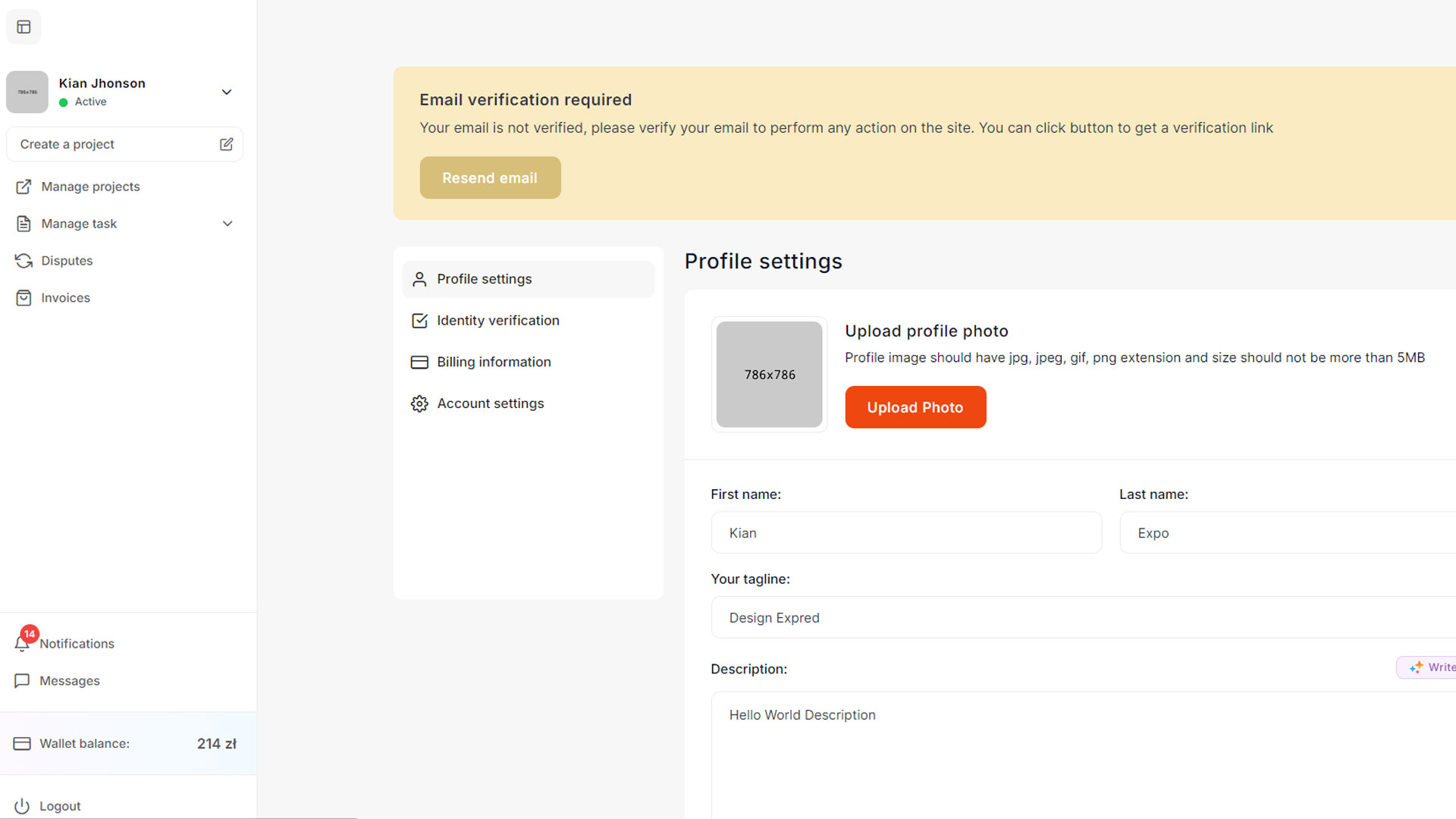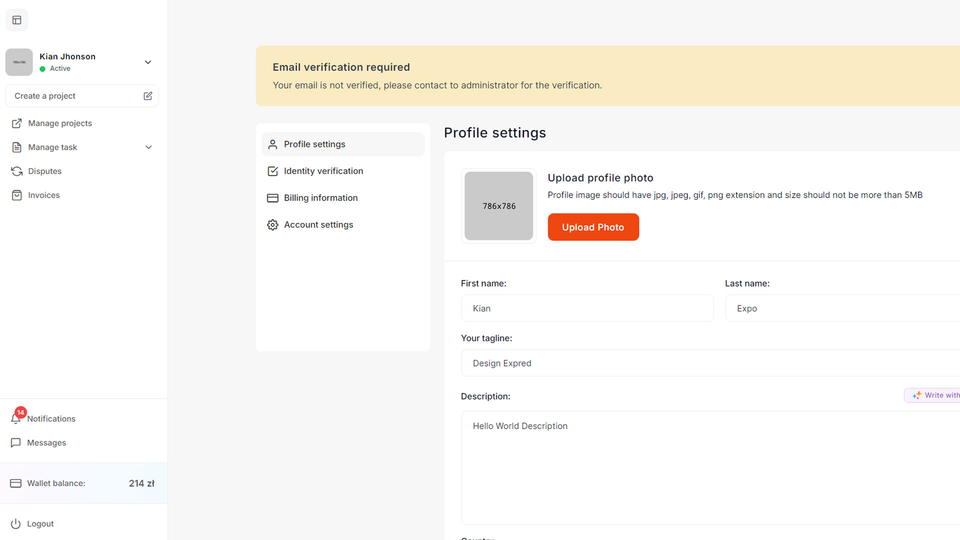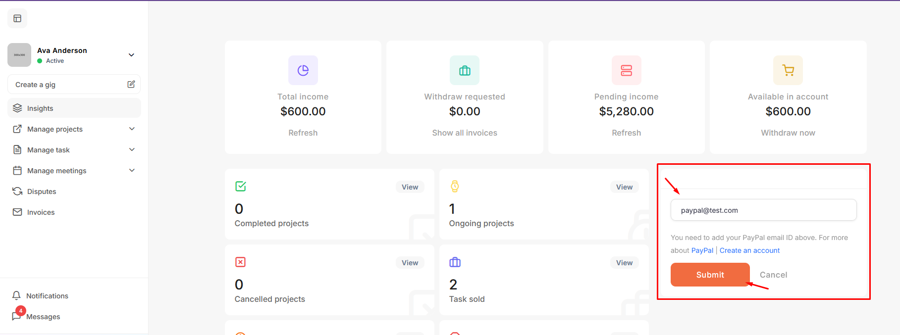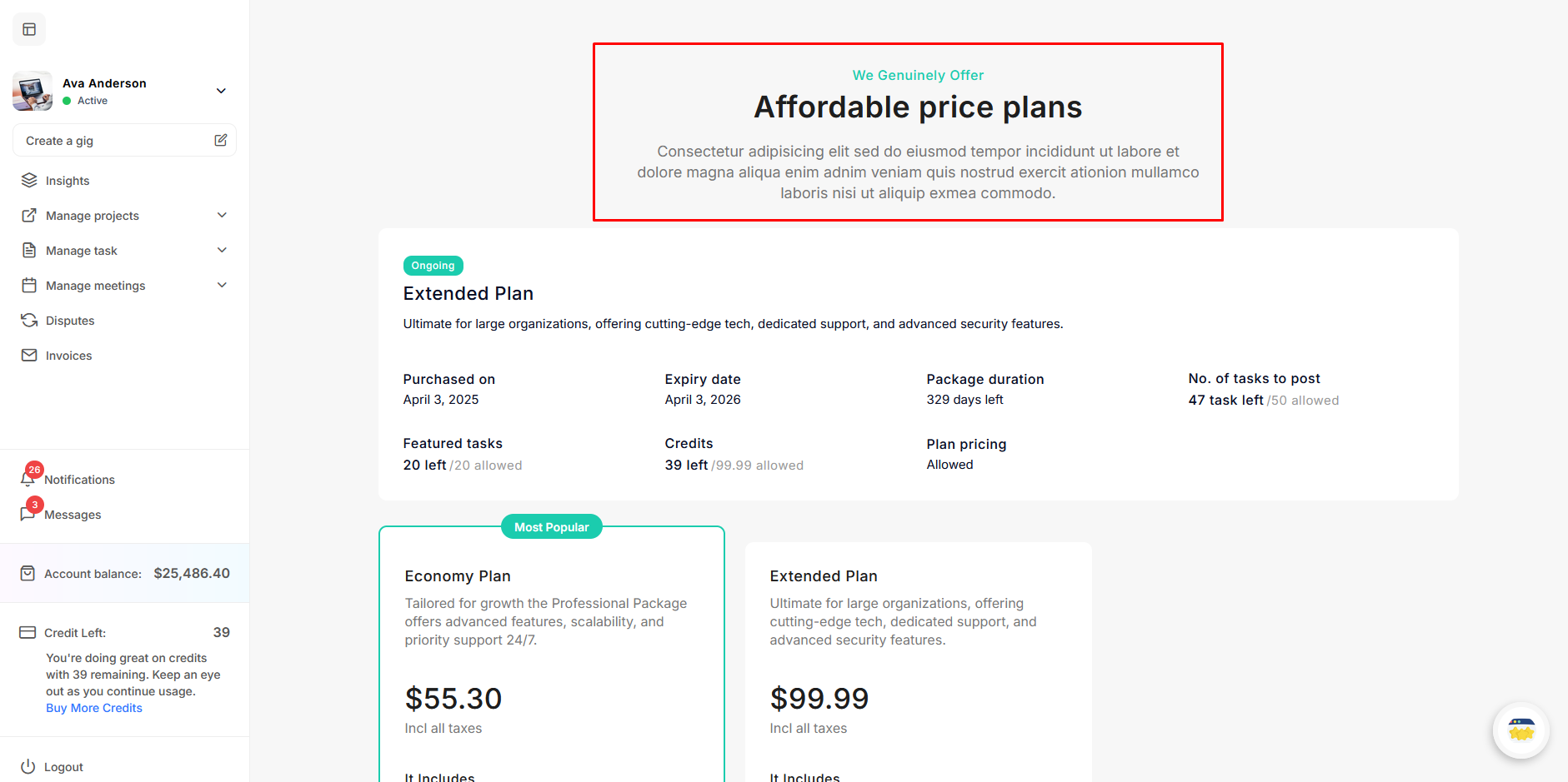 After logging in as an freelancer, explore the