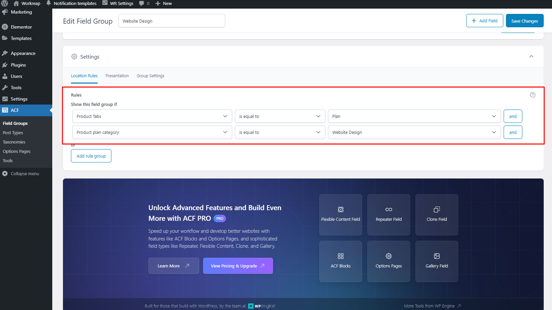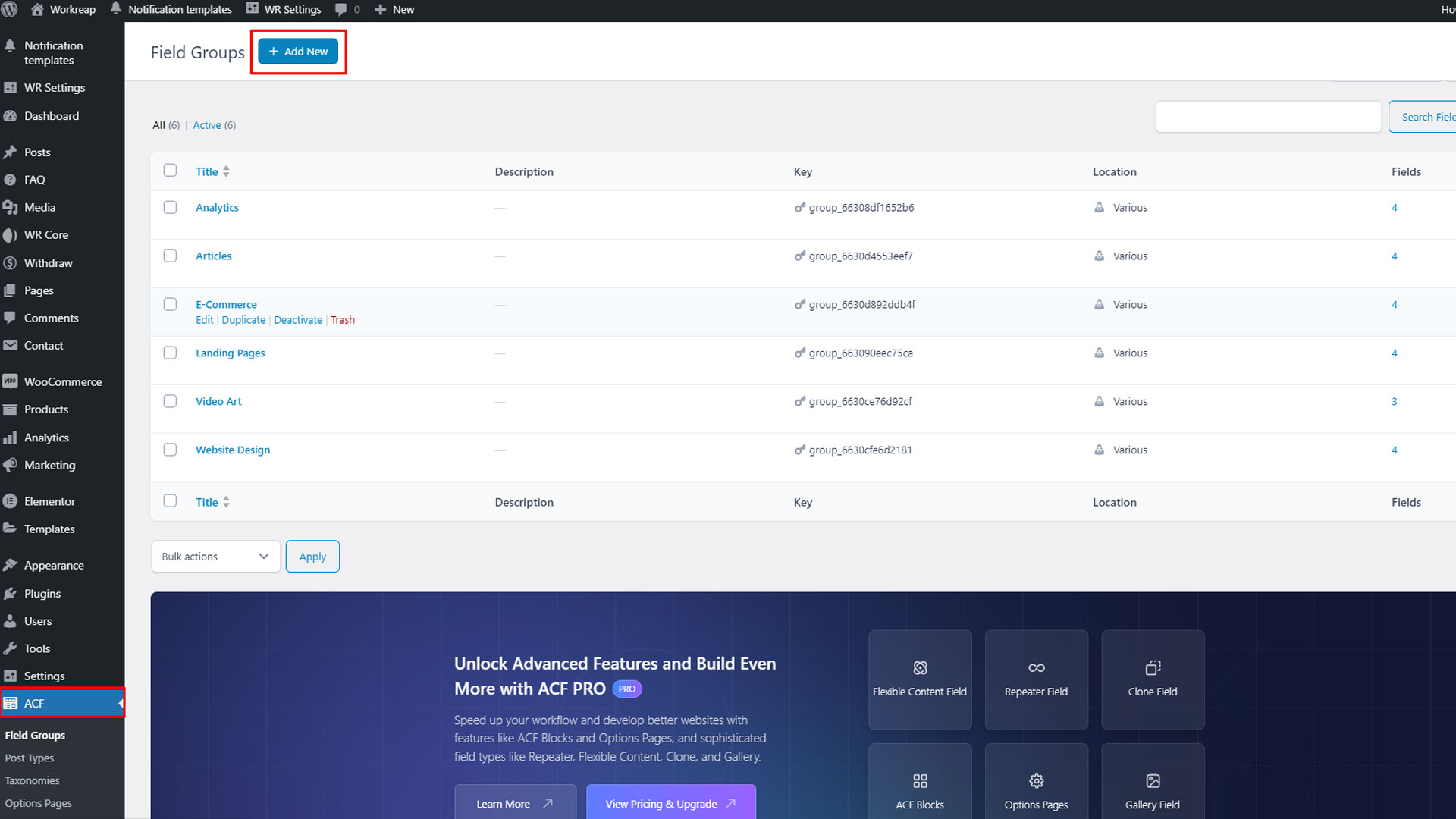 Step 1: Navigate to the "ACF" section in your WordPress administration panel and select "Add New" Field Groups.