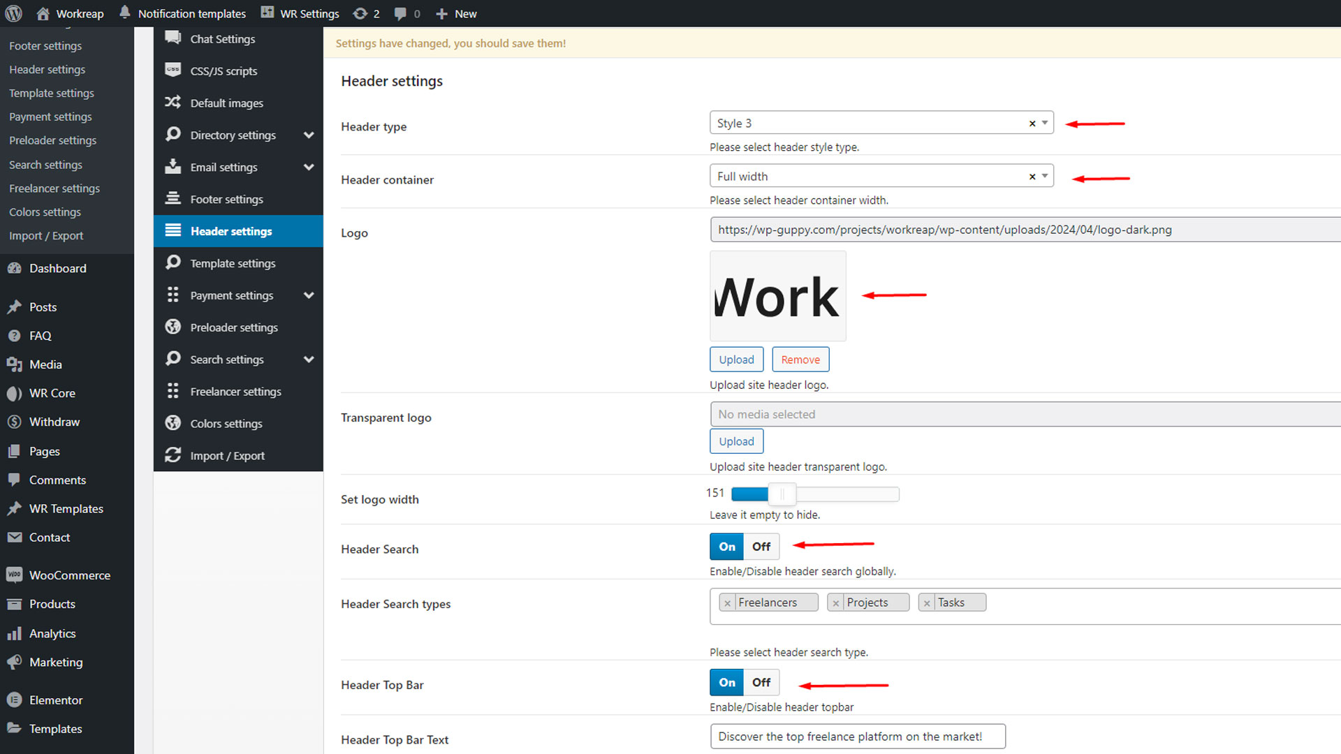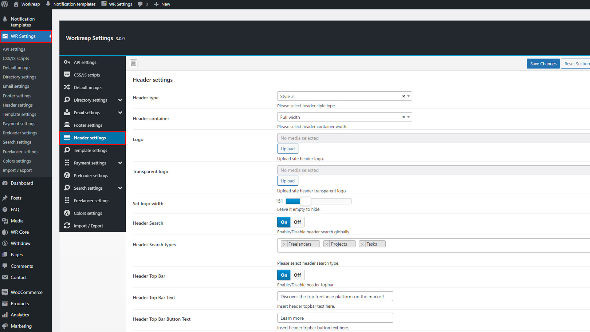 In the General section, you will find various settings and functionalities that allow you to configure the Workreap theme. These settings provide flexibility to enhance the overall appearance and functionality of your site, ensuring it meets your specific needs.