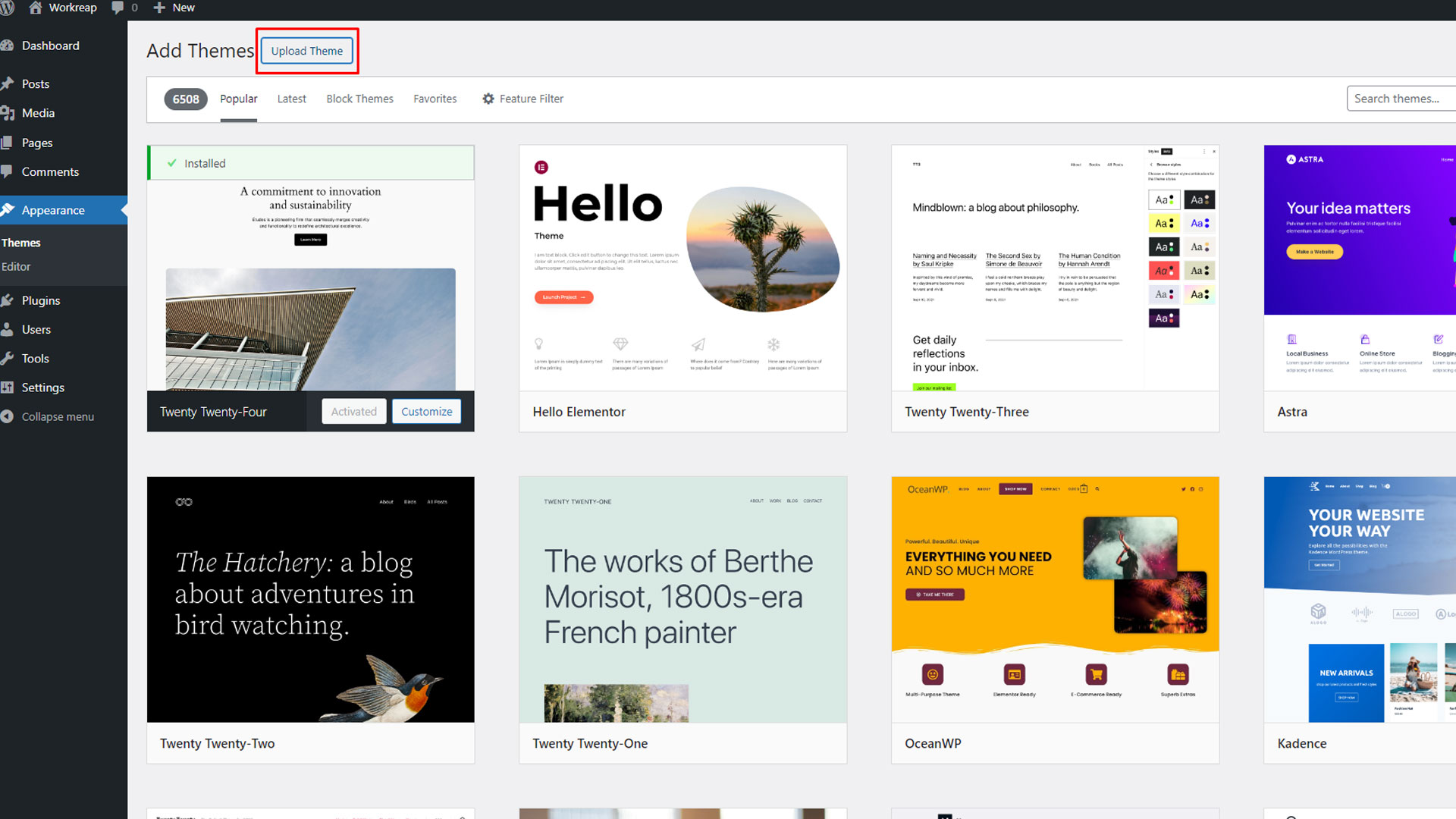 Step 1: Navigate to the WordPress administrator dashboard, then go to Appearance > Themes. Upload the latest version of the Workreap theme, which should be equal or greater then Version 3.0.