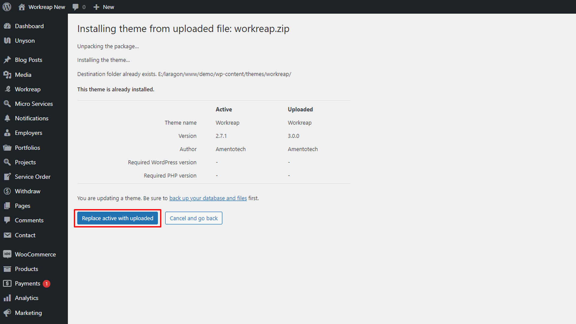 How to Install Workreap Theme