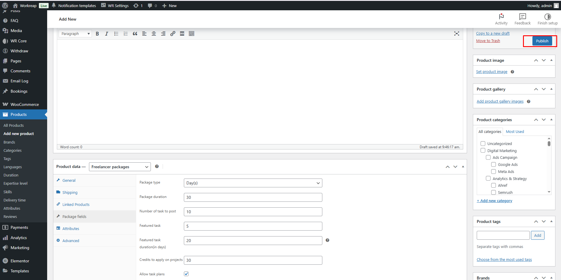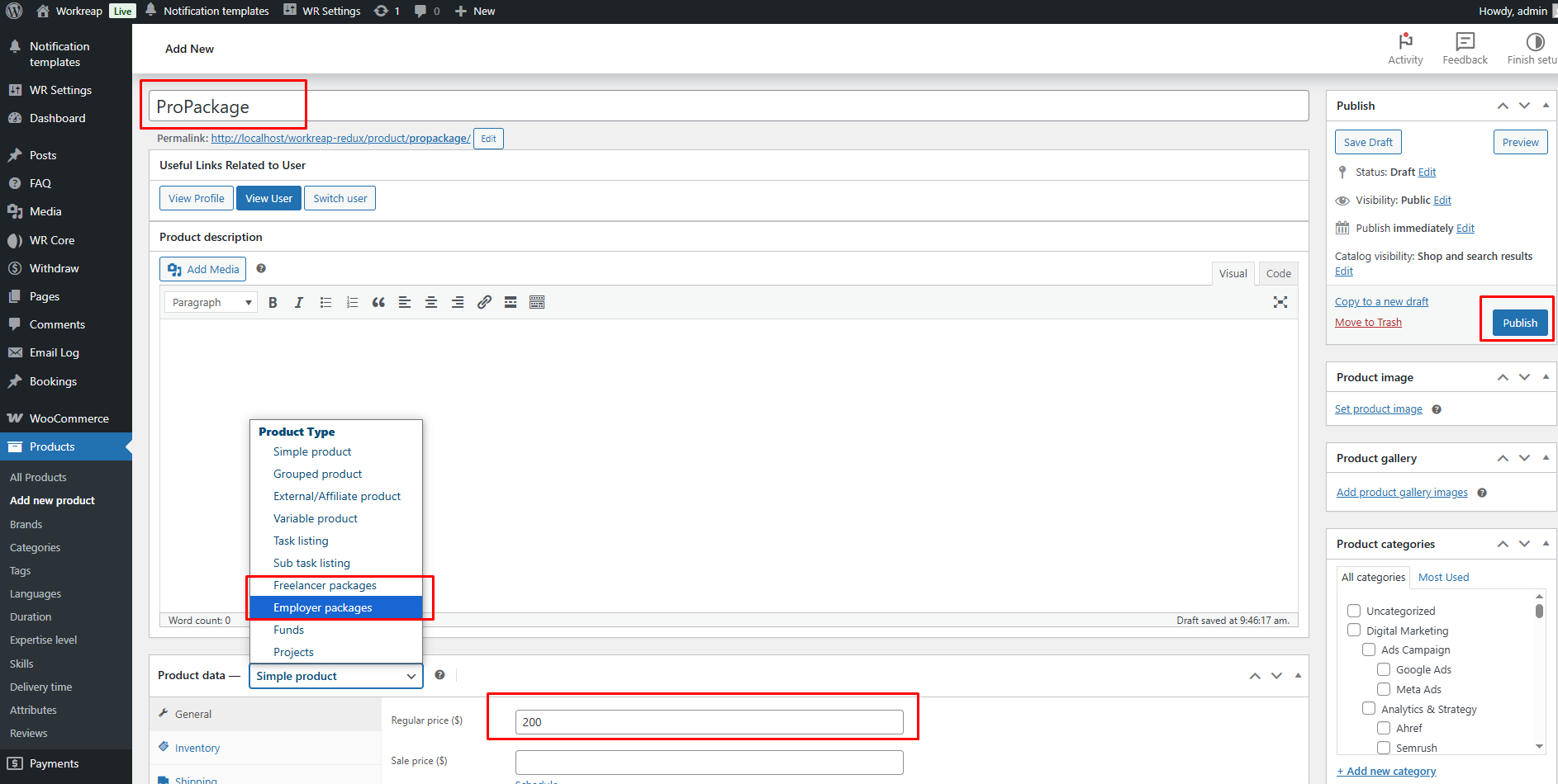 Set the package name/title, then add the package price, and choose whether this package is for an Employer or a Freelancer.