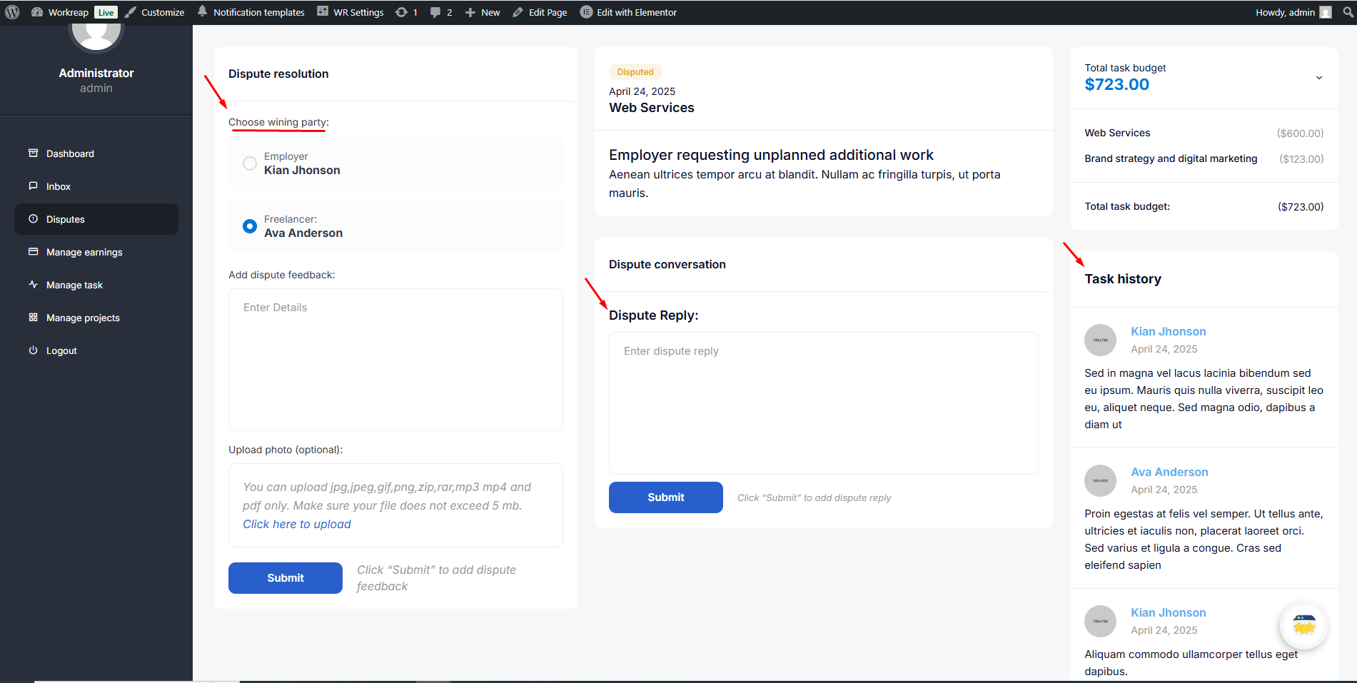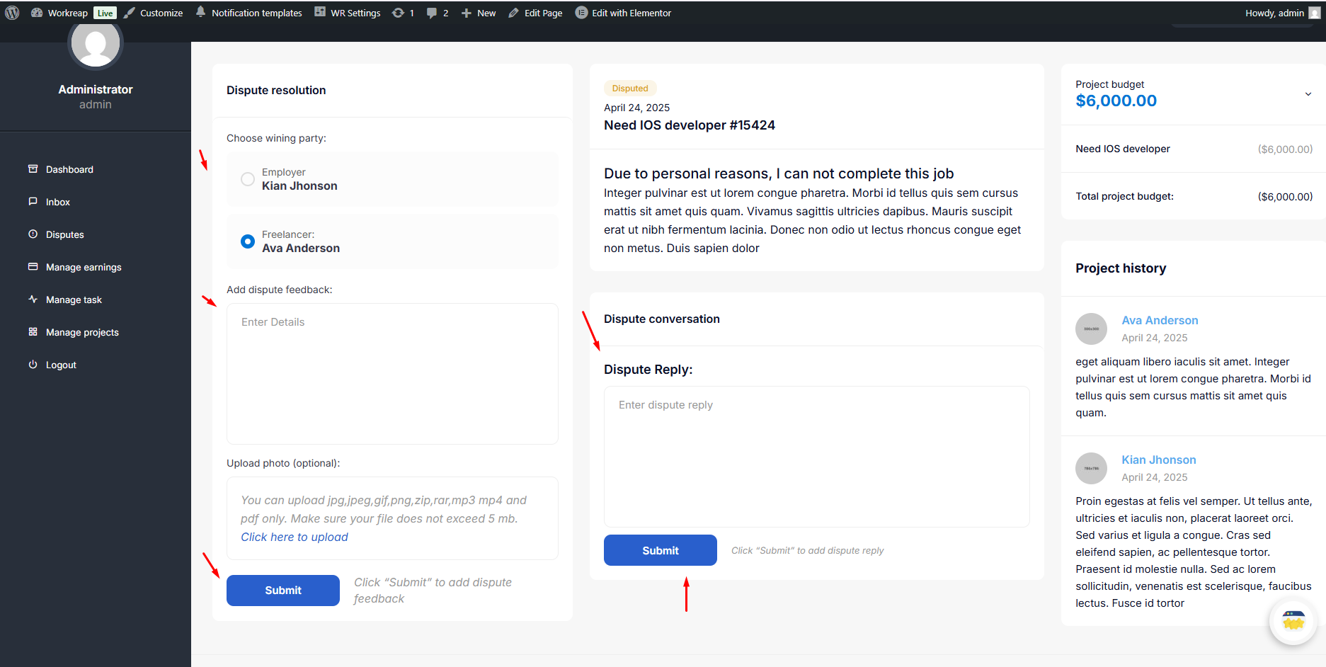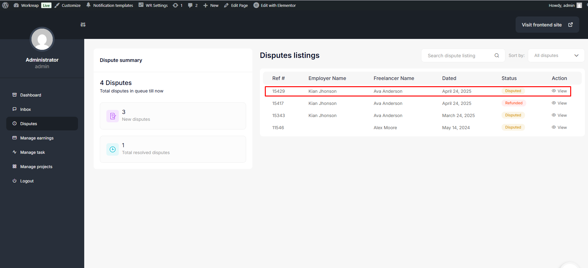 If the freelancer declines the refund request, the employer can create a dispute request. This request will go to the admin, who will ultimately decide which party is the winner.