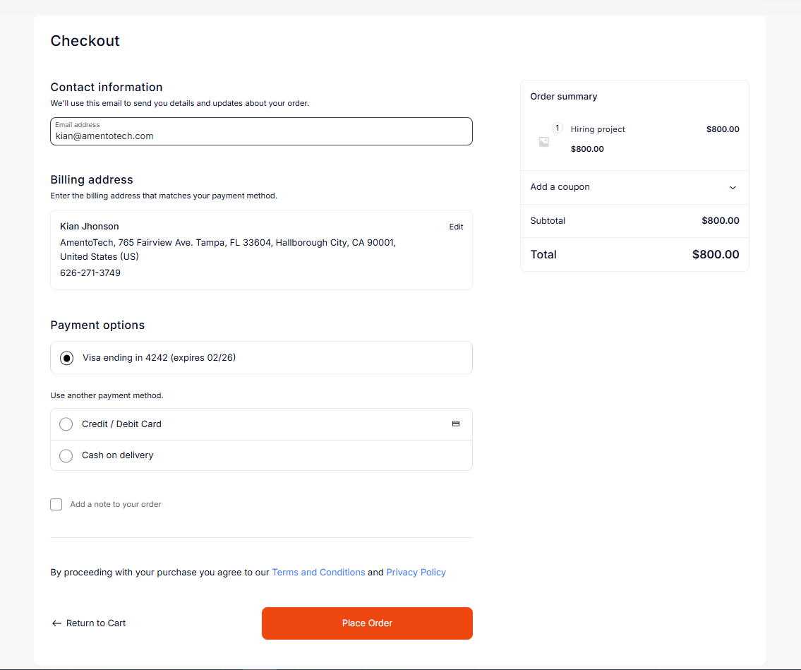At the checkout page, the employer can view all the details and place the order. This completes the hiring process.