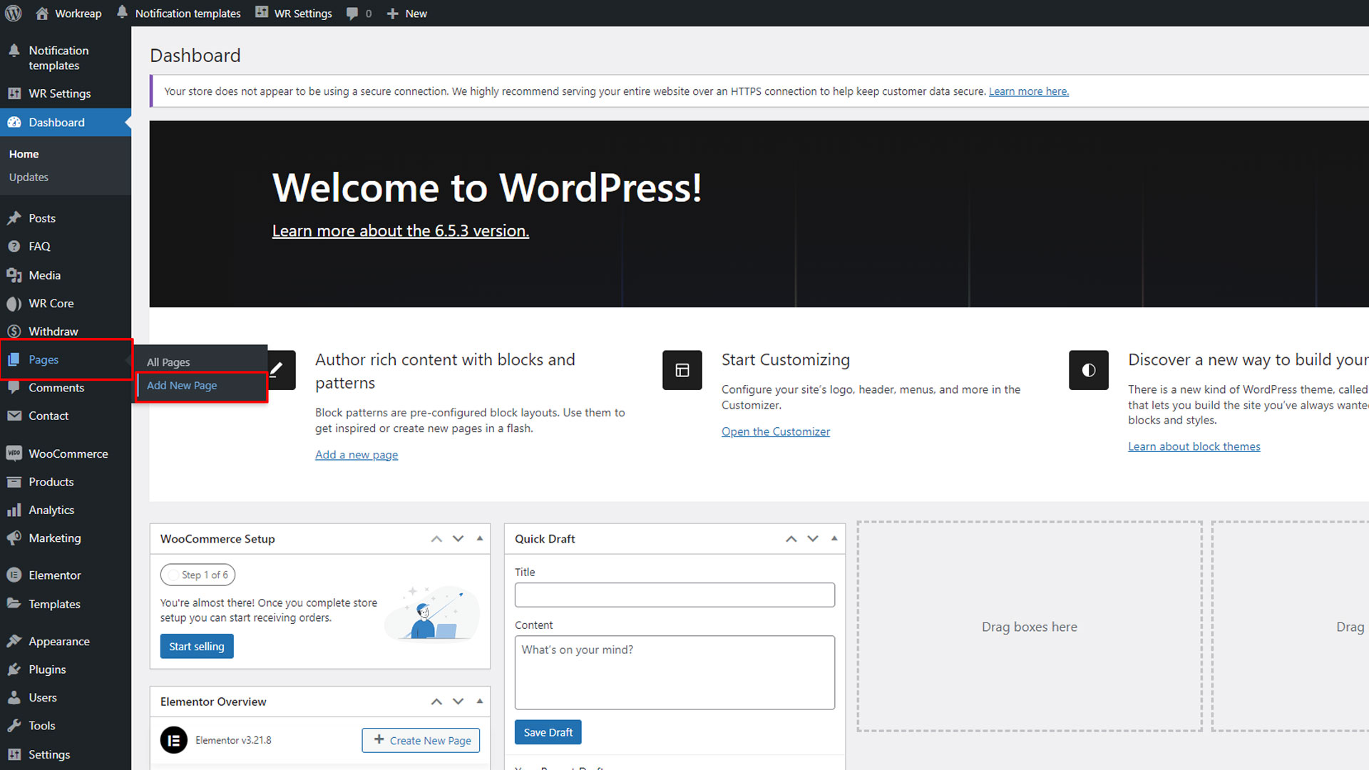 Step 1: Go to your WordPress administration dashboard, navigate to pages, and then select Add New Page.