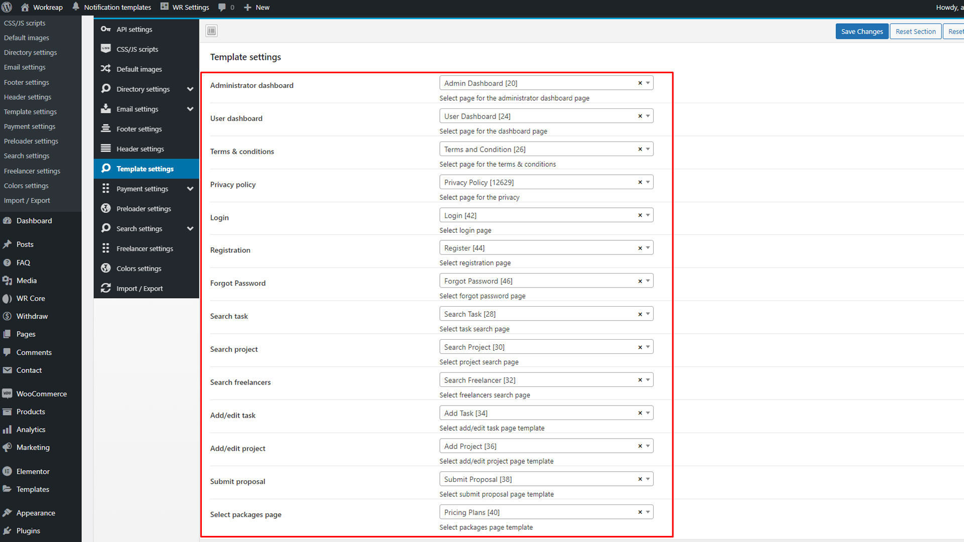 Follow these steps to manually set up the Workreap theme templates: