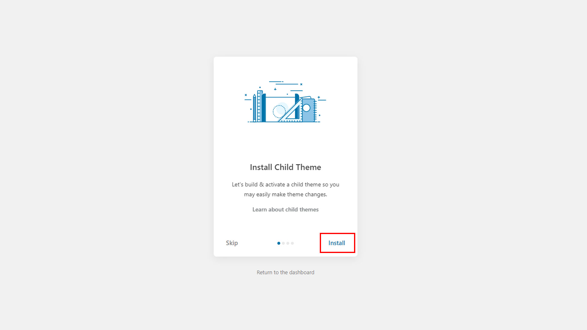 Step 3: You can now choose to install the child theme. If you prefer not to install the child theme, you can skip this step.