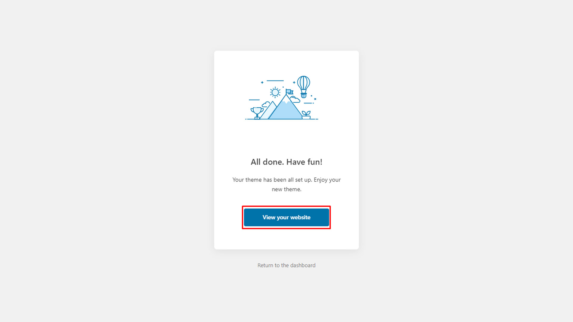 Step 2: After installing the theme, activate it to apply the changes. If it redirects you to the onboarding page, you can disable this wizard and return to the administrator dashboard.