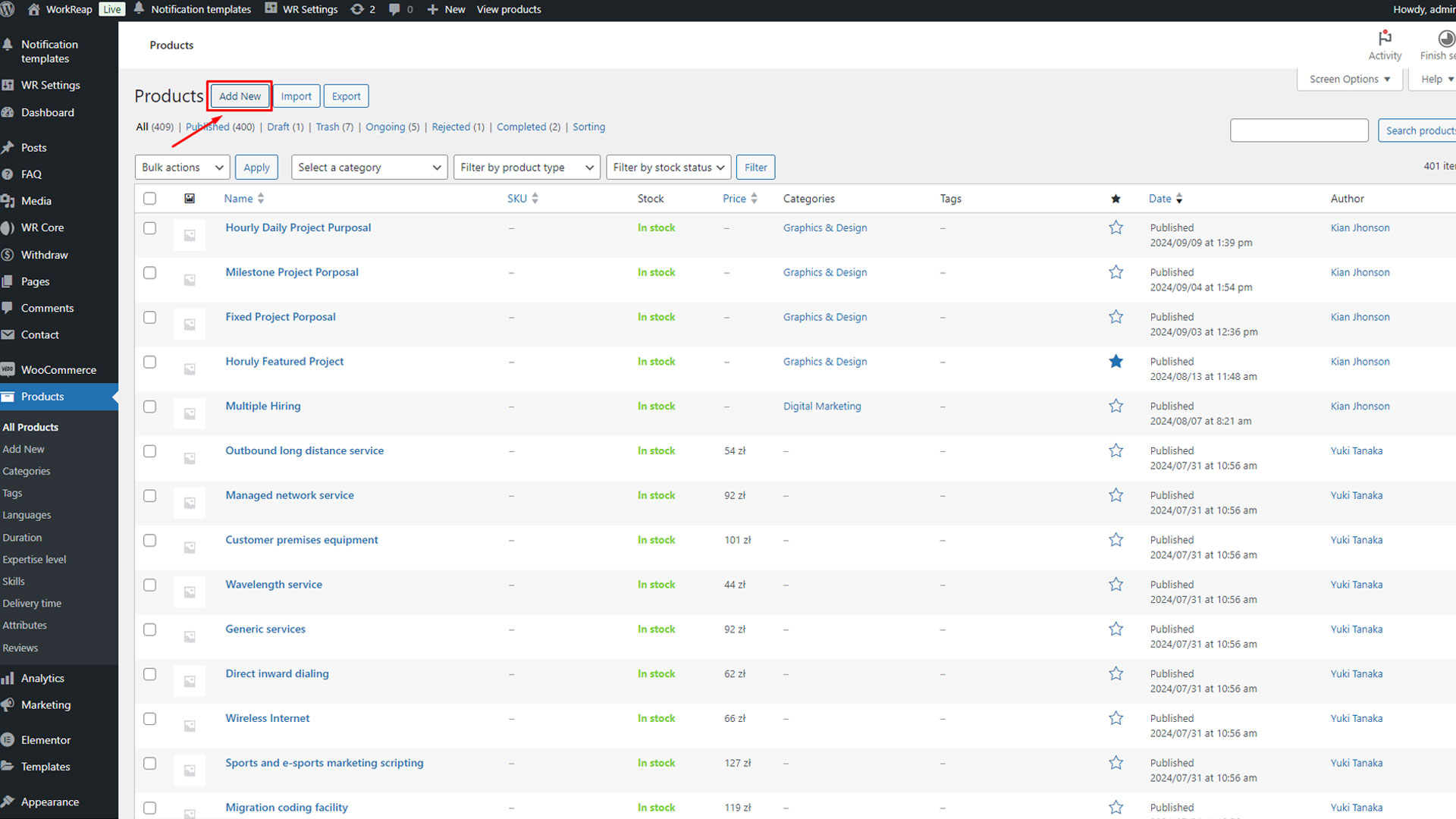 Step 1: Navigate to the "Product" section in your WordPress administration panel and select "Add New" product.
