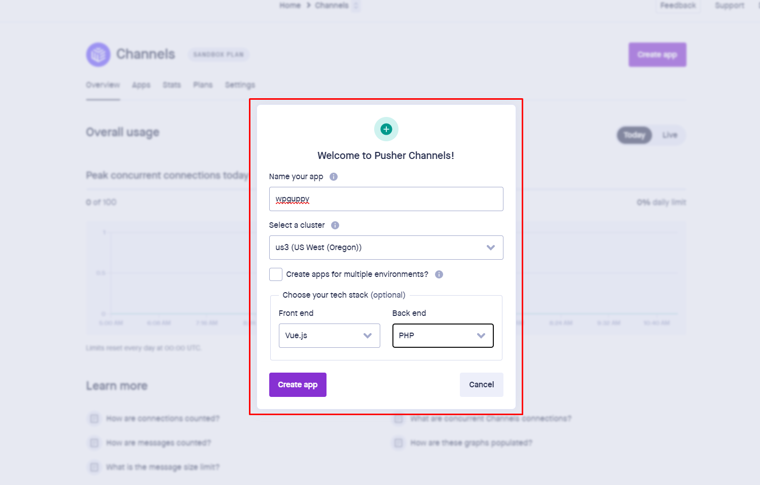 If you want to set up a pusher for a real-time chat, you need to add a webhook file path in your pusher account app settings.