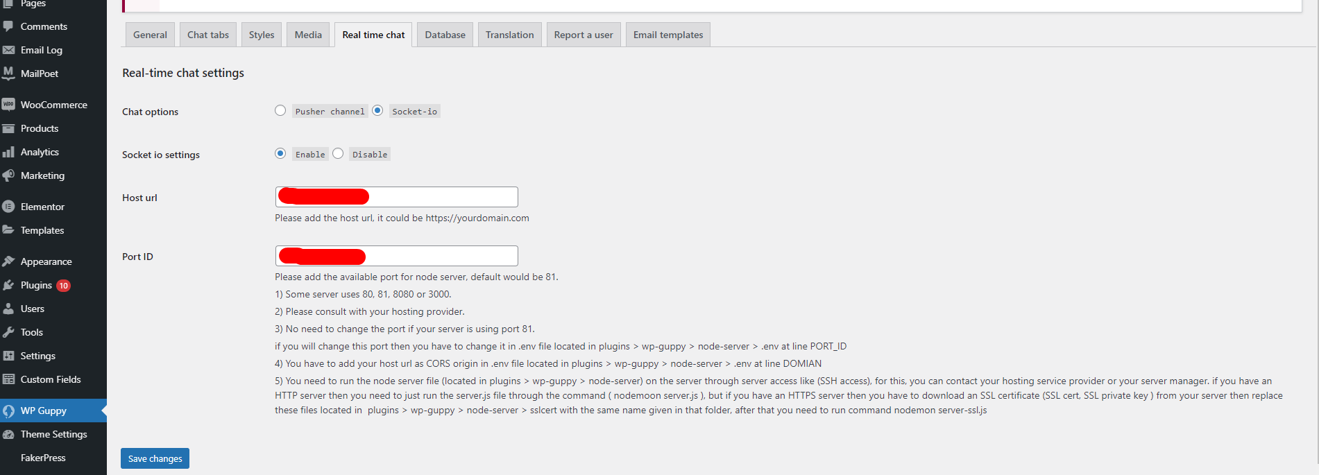 Note ( If you're using the Node server for real-time chat, you don't need to do anything. )